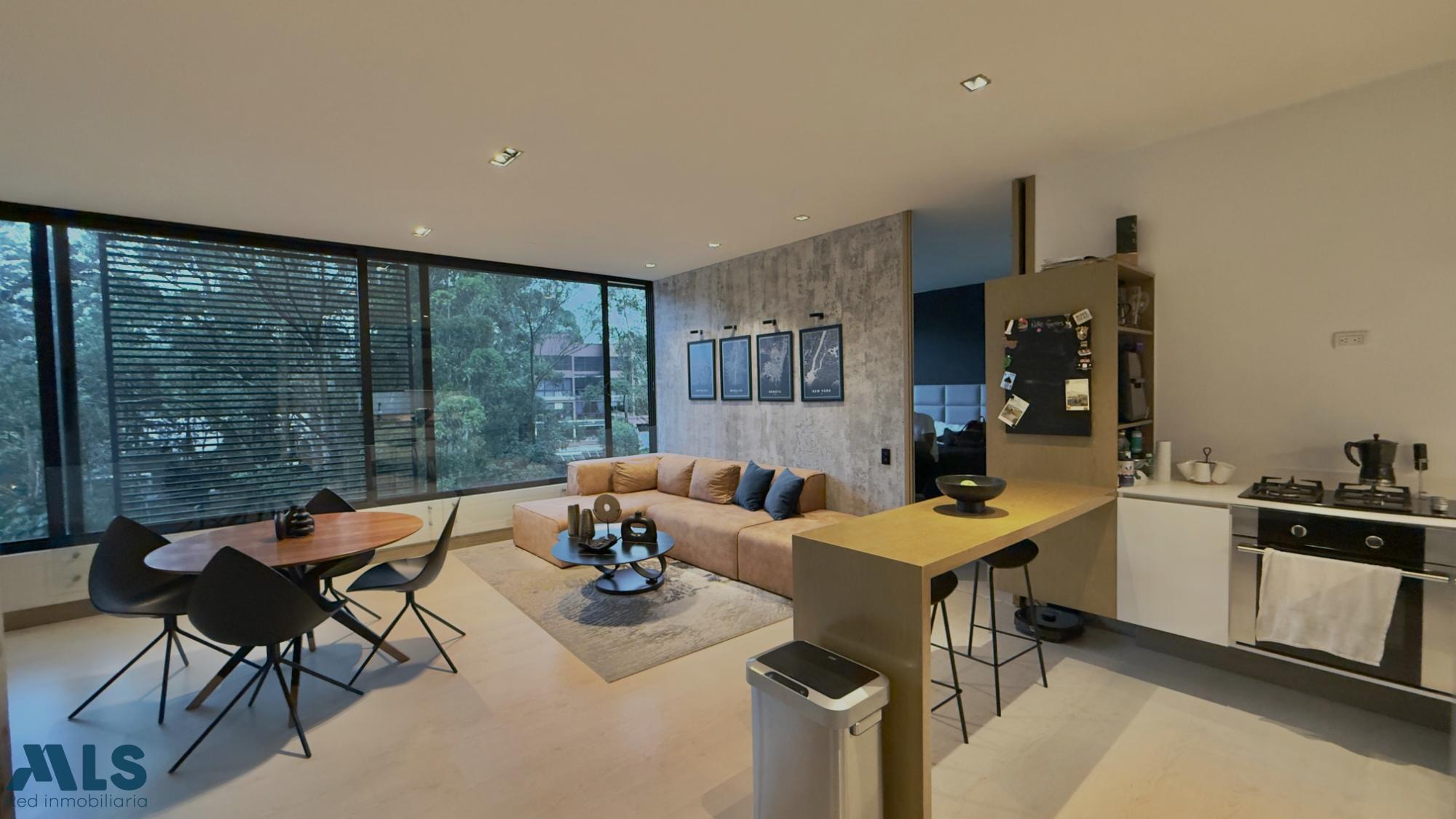 Este exclusivo apartaestudio con su diseño moderno y vanguardista con una hermosa arquitectura, en una excelente ubicación, muy cerca a zonas comerciales,excelentes vías de acceso,unidad muy segura y con diseños únicos y modernos. Cuenta con 83.86 mts construidos, donde encontramos sala, comedor,cocina abierta integrada a la zona social y con un ventanal piso a techo con una linda vista verde , baño social, habitación amplia e iluminada, vestier generoso, zona de ropas y 1 parqueadero cuarto útil. La zona exterior de la unidad tiene jacuzzi,carril de nado, gimnasio,fogata,BBQ, zona verde.