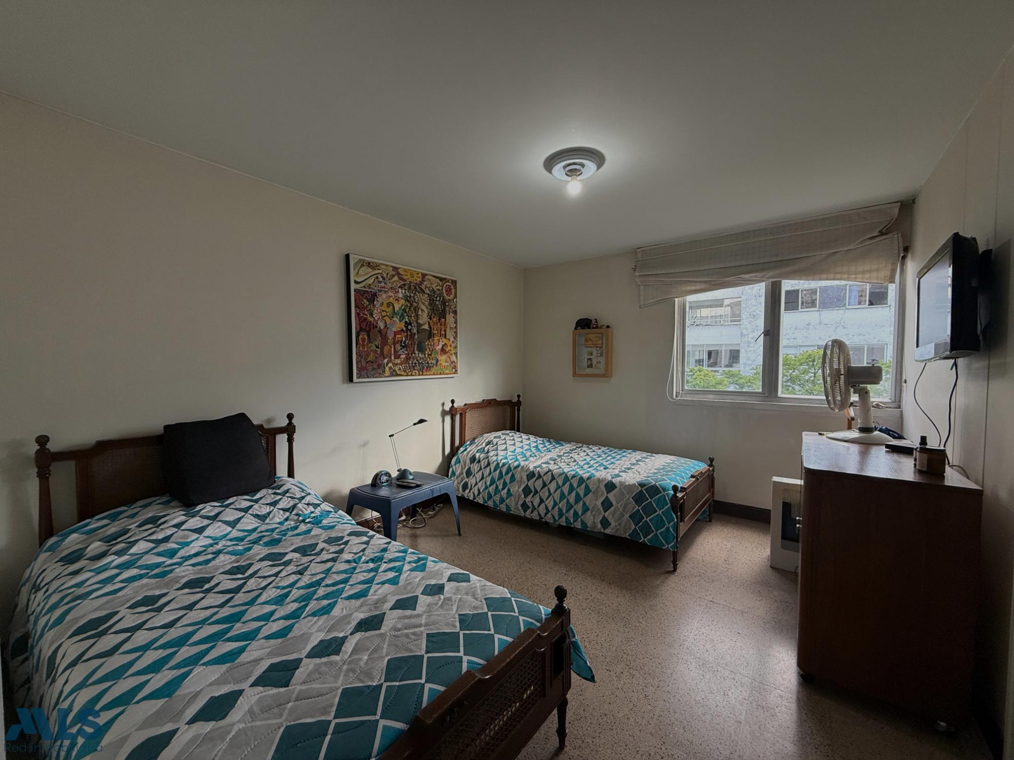 Apartamento en venta en el sector Suramericana en Conjunto Cerrado con ascensor y porteria 24hrs referente de ciudad. Cuenta con espacios de iluminación natural; distribuido en hall de entrada, salón comedor amplio, balcón con agradable vista, cocina integral con buenos espacios para almacenamiento, zona de ropas, alcoba y baño del servicio, alcoba principal con closet doble y baño privado, 2 alcobas auxiliares con closet, 1 baño social completo, parqueadero cubierto sencillo muy generoso. Situado en una zona tranquila y residencial con acceso fácil desde la Carrera 65, sede Colpensiones, Estadio Atanasio Girardot y variedad de establecimientos de comercio y transporte.