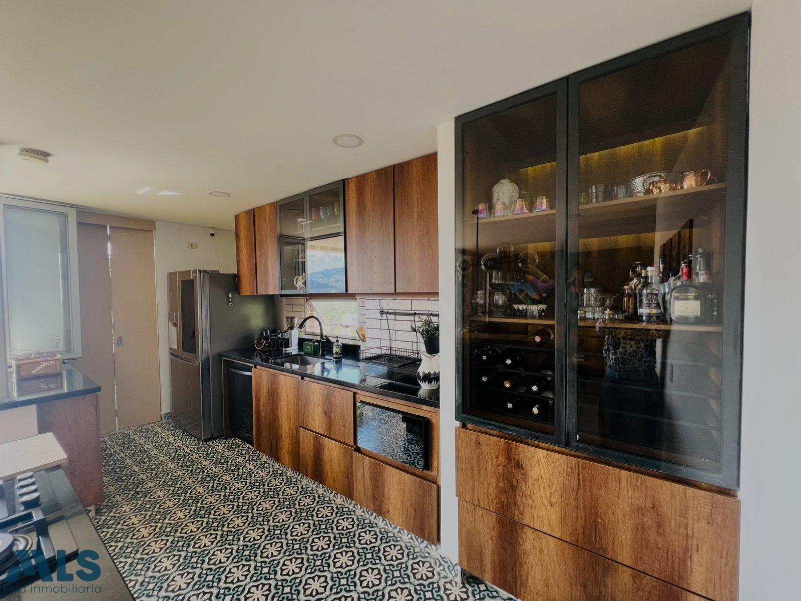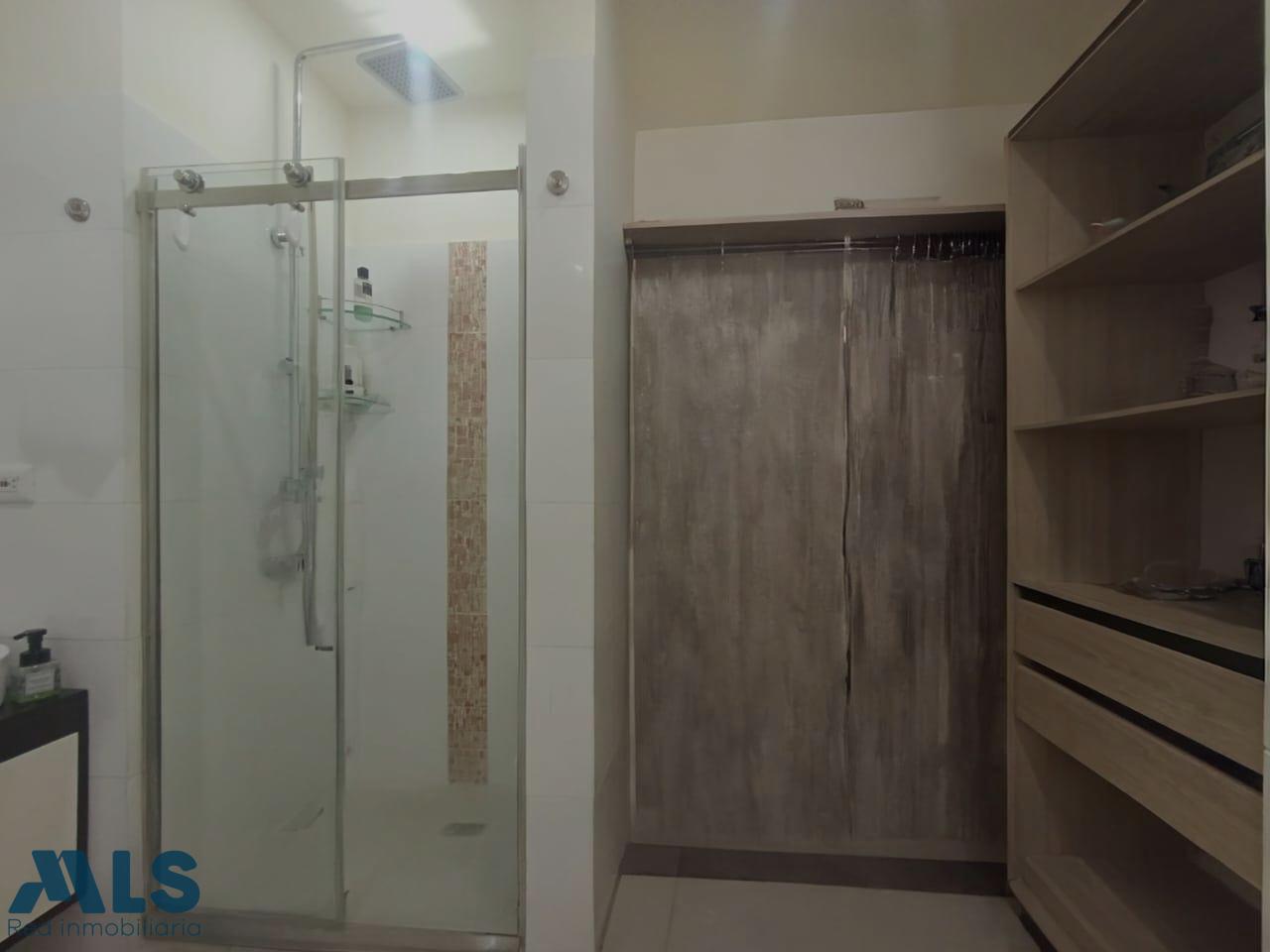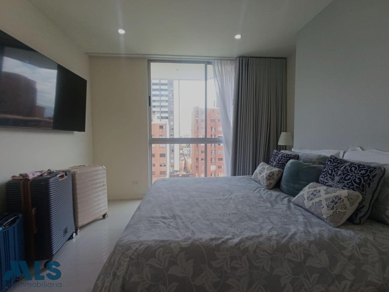 Apartamento en venta con 3 alcobas, todas con baño privado, siendo 2 con clóset y 1 con vestier. Tiene pisos en porcelanato, sala comedor, cocina integral con barra americana, zona de ropas con puerta y calentador de acumulación. Cuenta además con baño social medio, balcón, closet de linos e iluminación led. El edificio tiene 9 pisos, una sola torre con 3 apartamentos por piso. Las zonas comunes están en la terraza e incluyen jacuzzi, turco, gimnasio y salón social, ofreciendo espacios para el confort y el esparcimiento.